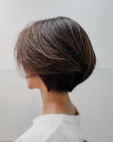 ほどよくくすんだグレージュに、ハイライトを忍ばせた短めネオウルフ。ベースの外ハネを控えめに抑えつつ、サイドから毛先を前に流すことで、フェイスラインを自然にカバー。ハイライトを加えることで、単色カラーよりも立体感が出るだけでなく、白髪を自然になじませる効果も期待できます。大人にもフィットしやすいデザインです。