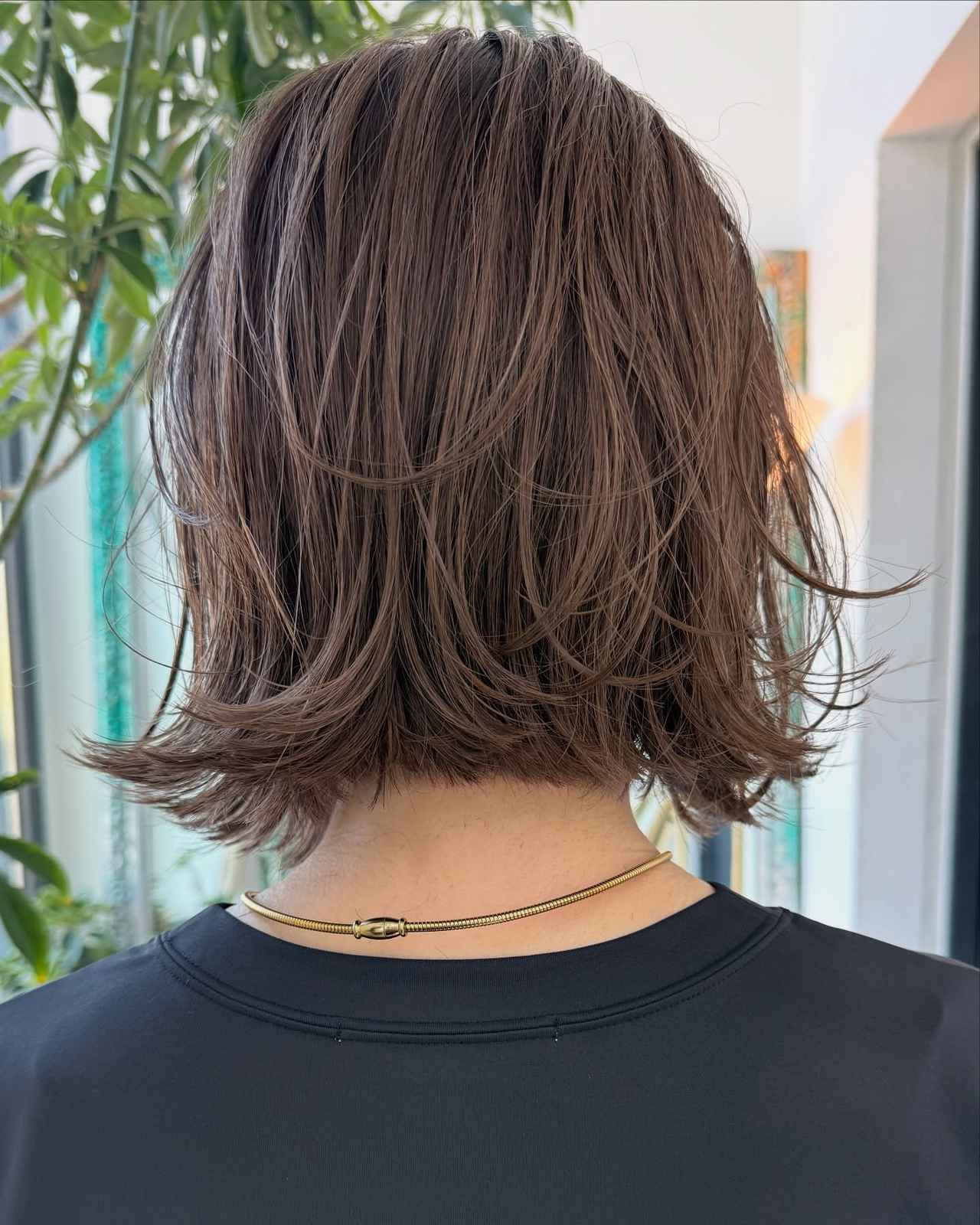 毛先をぷつっと切り揃えたタッセルボブには、ややコントラストをつけた筋感のあるハイライトがお似合い。凛々しいスクエア型と組み合わせることで、すらっと伸びる縦のラインが強調されてスタイリッシュに見えそう。カットした@yuuna__iwamaさんは、「シンプルスタイルはバームでツヤ感を出してお洒落に」とスタイリングについて提案しています。