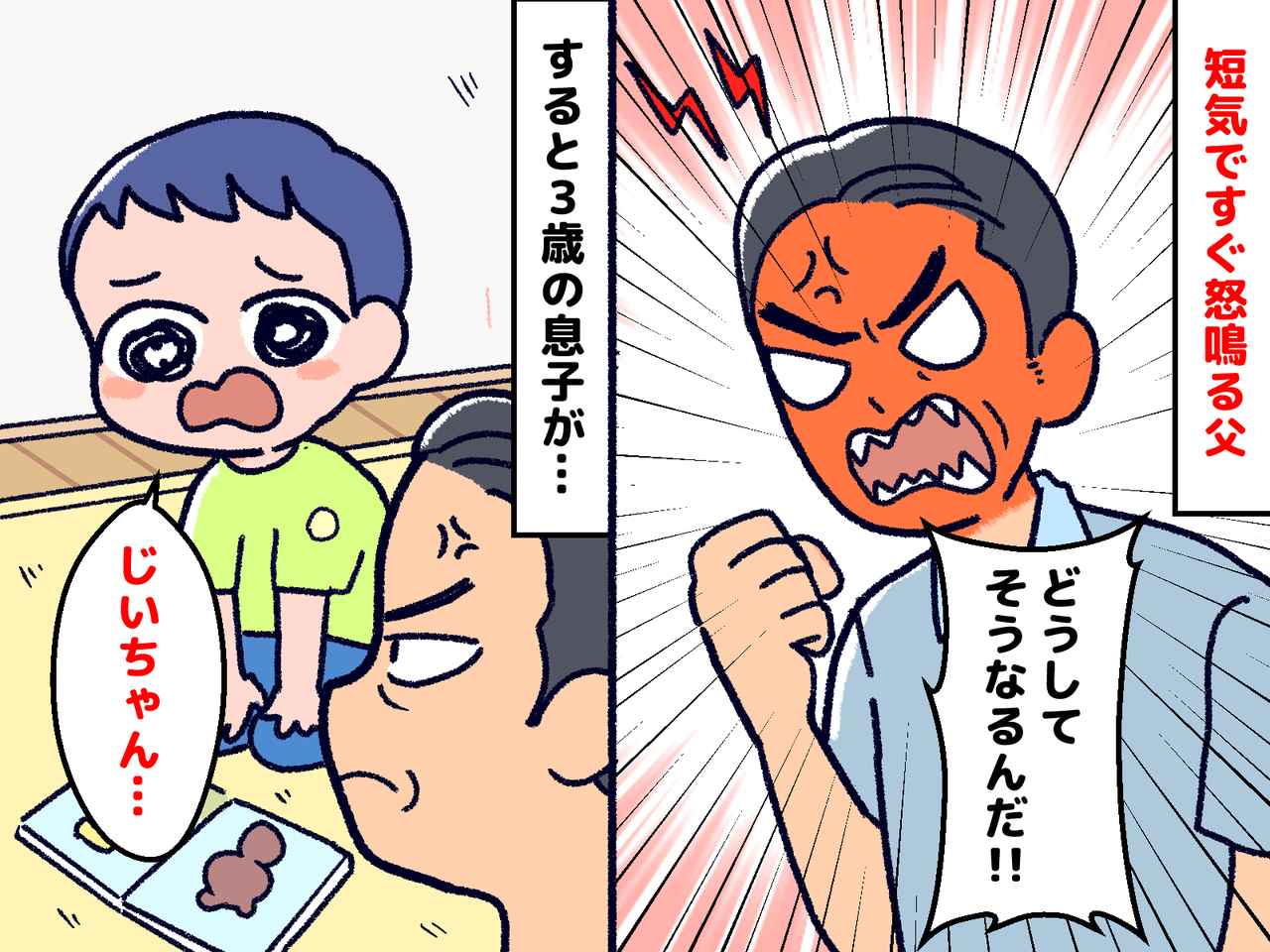短気で怒鳴りがちな父に、家族はいつも気を遣っていました。家の中は父の機嫌次第で空気がピリピリ。そんな父を変えたのは孫のひと言。純粋な孫の声が心に響いたのか、父はハッとし、少しずつ怒鳴らなくなりました。