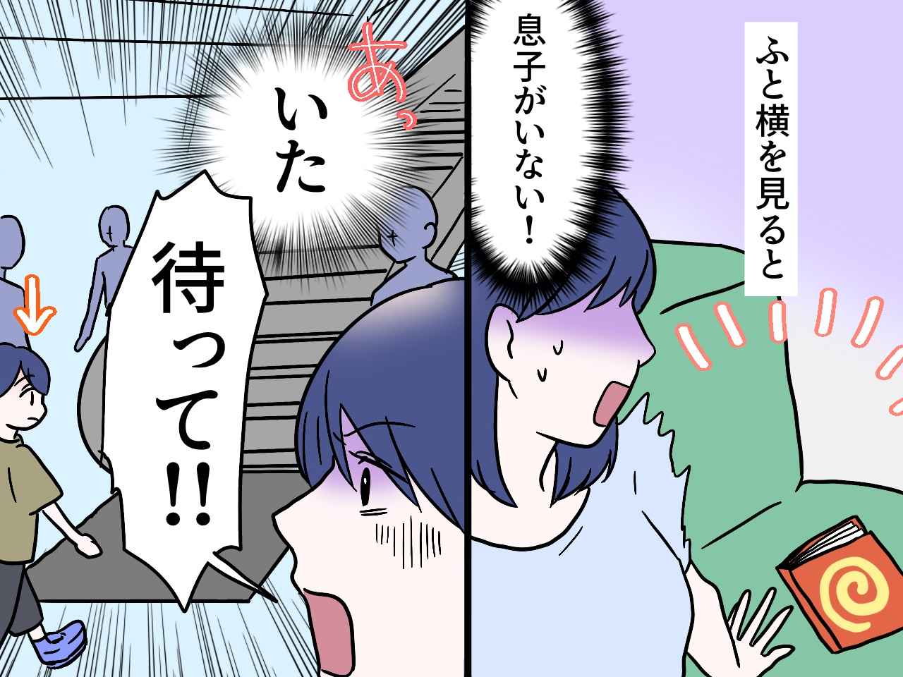 買い物の途中、息子とベンチで休んでいたときのこと。スマホに目を向けたほんの数十秒の間に、息子の姿が消えてしまいました。迷子になりかけた息子に、「勝手に走ったらダメ!」と思わず叱ってしまいましたが……。