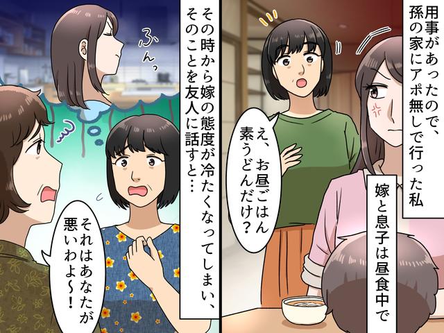 「あれ以来、お嫁さんの態度が冷たくてね……」と言う私に友人は、「それはあなたが悪いわよ!」と少し呆れ気味。