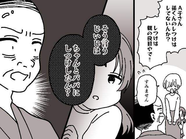 それを見た義父から、「しつけは親の役目やで」と言われてしまいました。A子は「はい、すみません……いつも言ってるんですけどなかなか」と返事をしました。夫はA子と義父との会話が聞こえているのか、聞こえていないふりをしているのか、完全に無視!