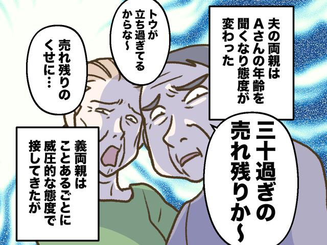 筆者の知人Aさんのお話です。Aさんは34歳で同い年の夫と結婚しました。歳を重ねてからの結婚を皆が祝福してくれました。しかし、義両親だけは違ったのです。その結婚が遅すぎると言う理由で、ことあるごとに辛くあたり、Aさんは傷つけられてきました。ある日、耐えかねたAさんの怒りが爆発します。