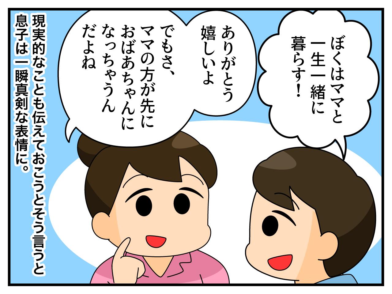 「大きくなっても、ママとずっと一緒に暮らす!」と決意する筆者の幼い息子。しかし、ママが先に年を取るということを教えると、息子は真面目な顔に。ついに息子が考え、導き出したのは、新しい未来の自分の職業。思わず笑ってしまった、愛情深い母子の楽しい会話を紹介します。
