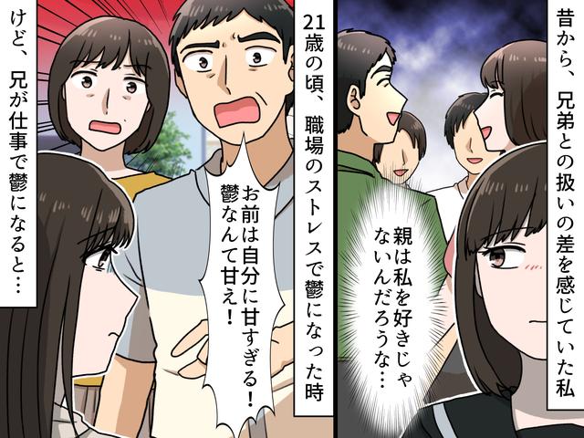 画像: <兄弟差別>「鬱は甘えだ!」と実母に怒鳴られた過去 → 同じ病で休職した兄への『母の言葉』に絶望