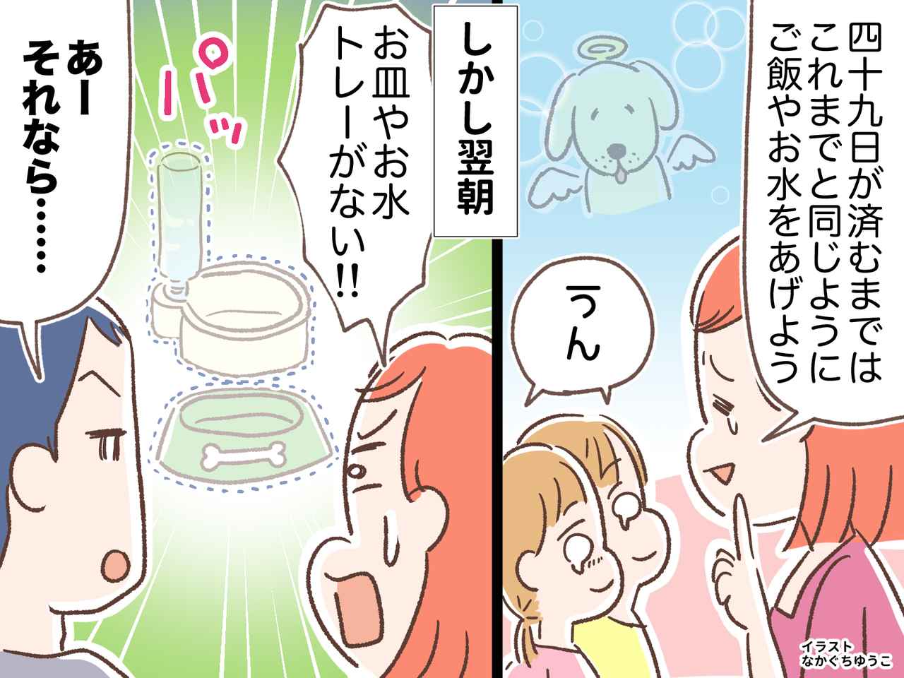 自然と誰かが口を開き『四十九日が終わるまでは、これまで通り愛犬のご飯やお水の準備を続けよう。きっとまだ近くにいるはずだから』と家族の間で決まりました。