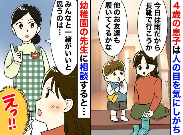 画像: 長靴を履くのも【周囲の顔色を伺う4歳息子】周りの目を気にするのは、意思が弱いから? 先生の『答え』は