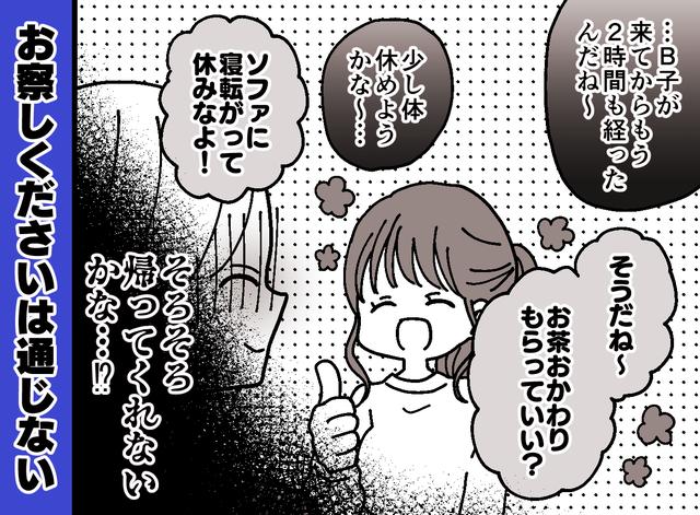 「まだ帰ってくれないのね」と少し戸惑った私は、意を決してそれとなくB子に伝えてみることに。
